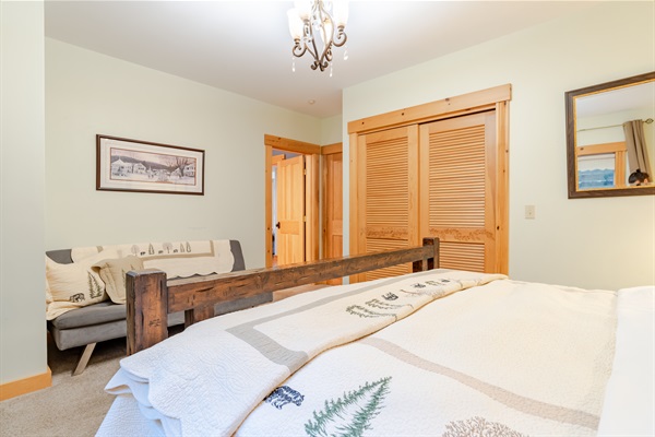 Master bedroom closet can double as a nursery with the provided full size folding crib